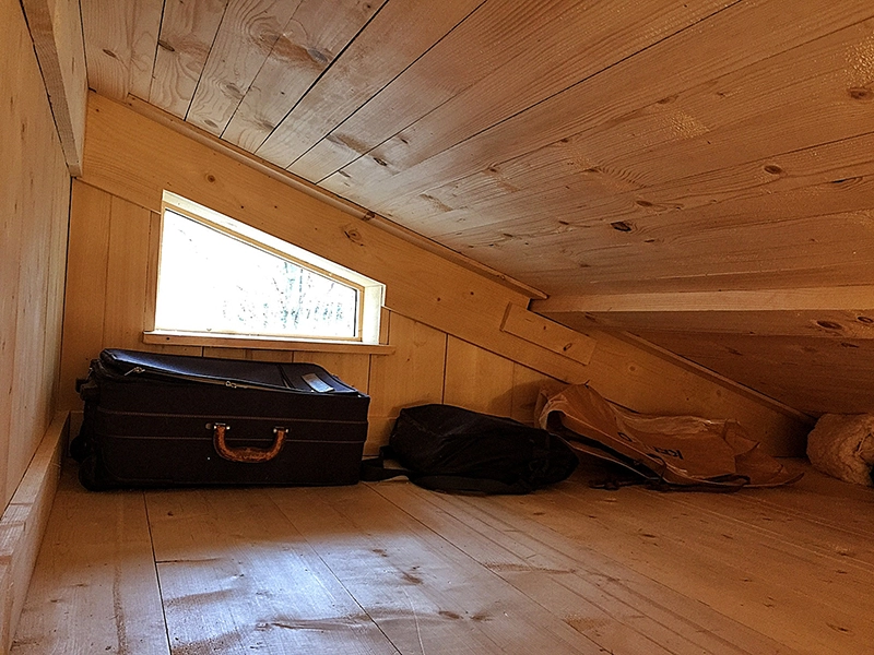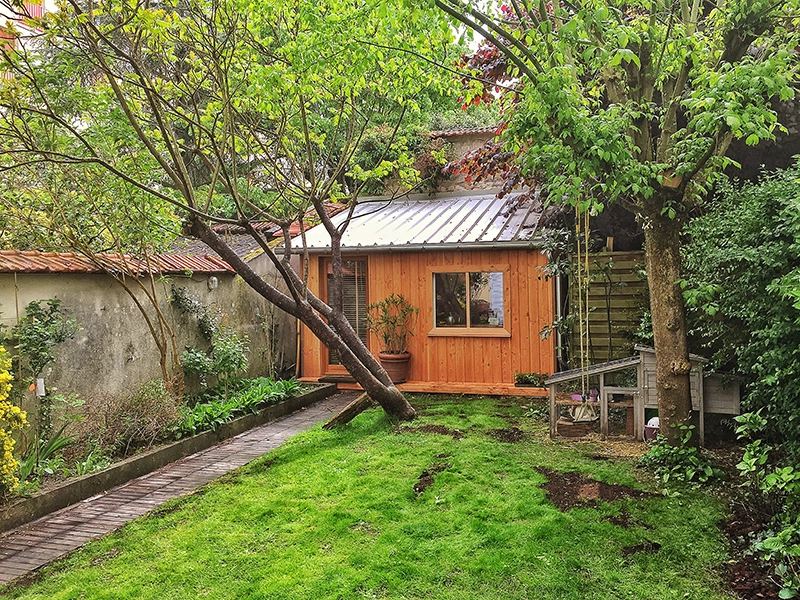 - Intérieur en épicéa au fond d'un jardin